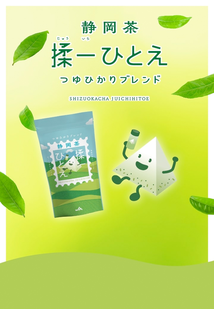 静岡茶産地JAが力をあわせてつくる「揉一ひとえ」の中で一番、味わいやさしく、飲みやすいお茶。それは、静岡生まれの品種「つゆひかり」をほどよくブレンドしているから。明るい緑の水色(すいしょく)、まろやかな味わい、こころなごむ香りを引き出しました。渋味の苦手なお子様にぴったり。ティーバッグでお手軽に、おうちでもお外でも、毎日、お気に入りの一杯をどうぞ。